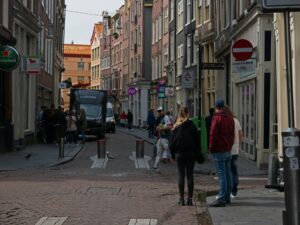 and almost driving her over,